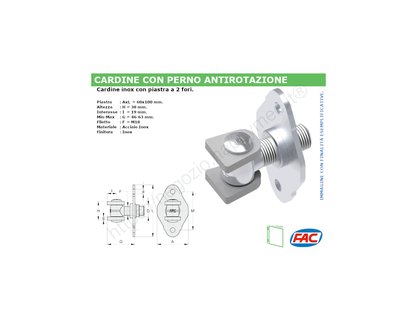 -15% Ultimi articoli in magazzino Cardini alettati e piastra 2F Cardine alettato M22 inox piastra di fissaggio a 2 fori FAC S.r.l. VC1110.A22.i 53,74 € 63,22 € Peso stimato per la spedizione kg. 0,65 Aggiungi al carrello