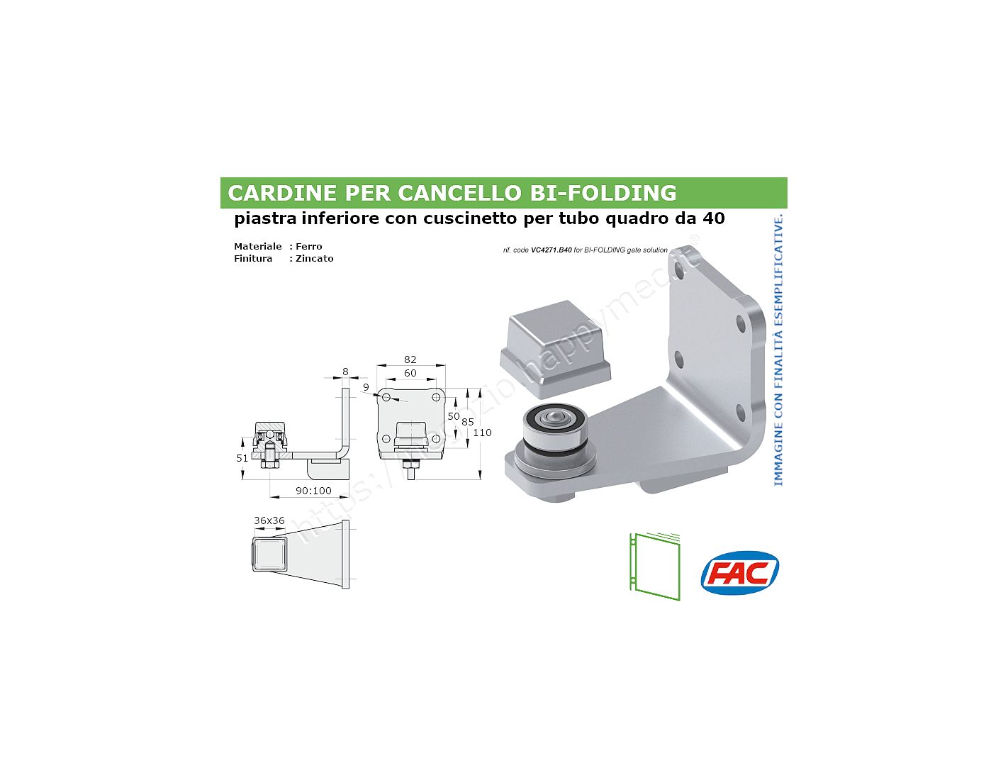 -15% Ultimi articoli in magazzino Accessori Bifolding Cardine inferiore zincato Q.50x50 per cancello bi-folding FAC S.r.l. VC4272.B50.z 61,48 € 72,33 € Peso stimato per la spedizione kg. 1,37 Aggiungi al carrello