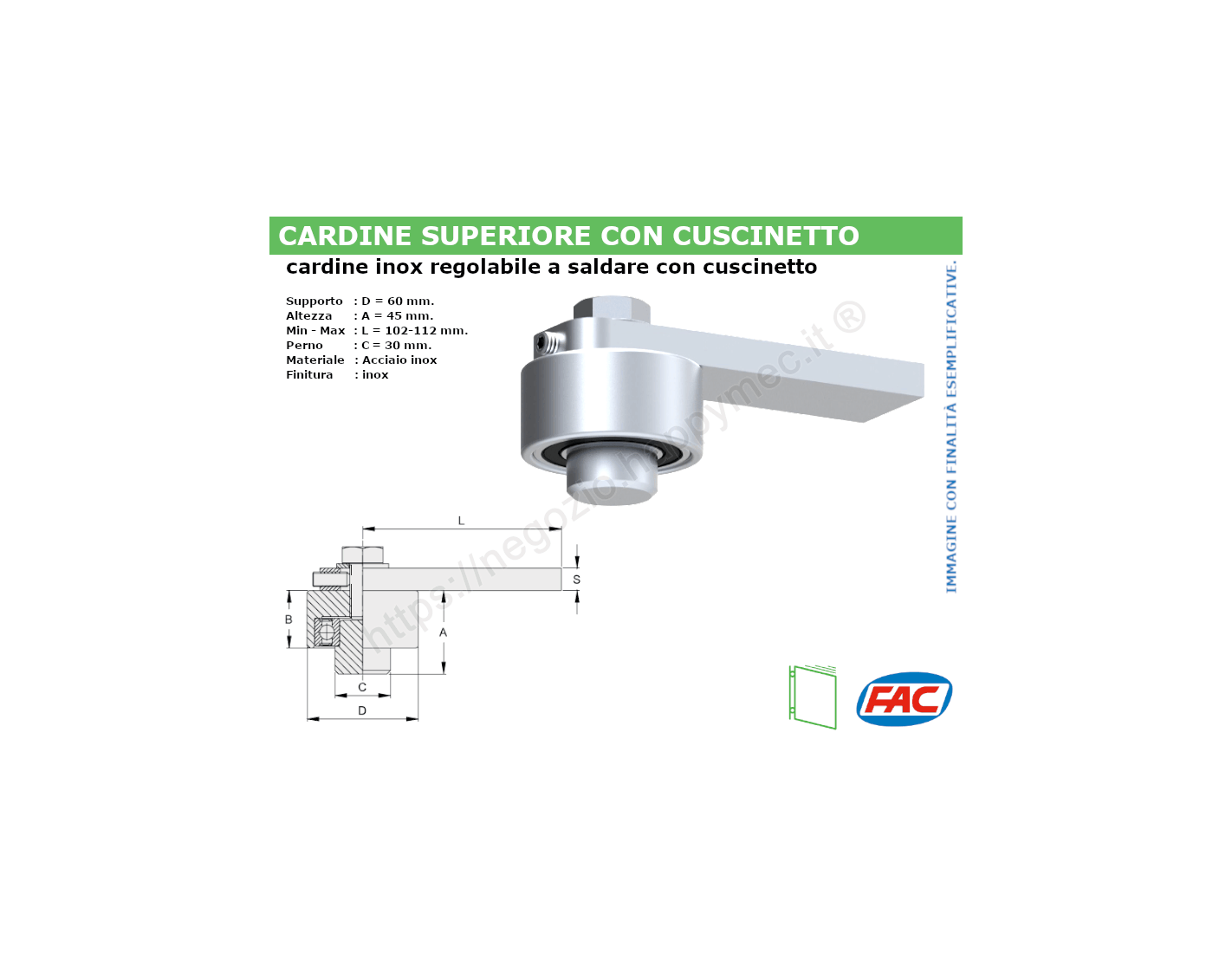 -15% Ultimi articoli in magazzino Cardine superiore a saldare Cardine superiore zinc. d.70 con cuscinetto FAC S.r.l. VC4101.070.z 46,05 € 54,18 € Peso stimato per la spedizione kg. 1,61 Aggiungi al carrello