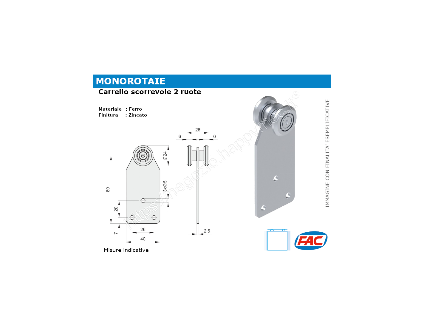 Il Carrello zincato con 2 ruote da 24 mm per Monorotaia MR-C è la scelta ideale