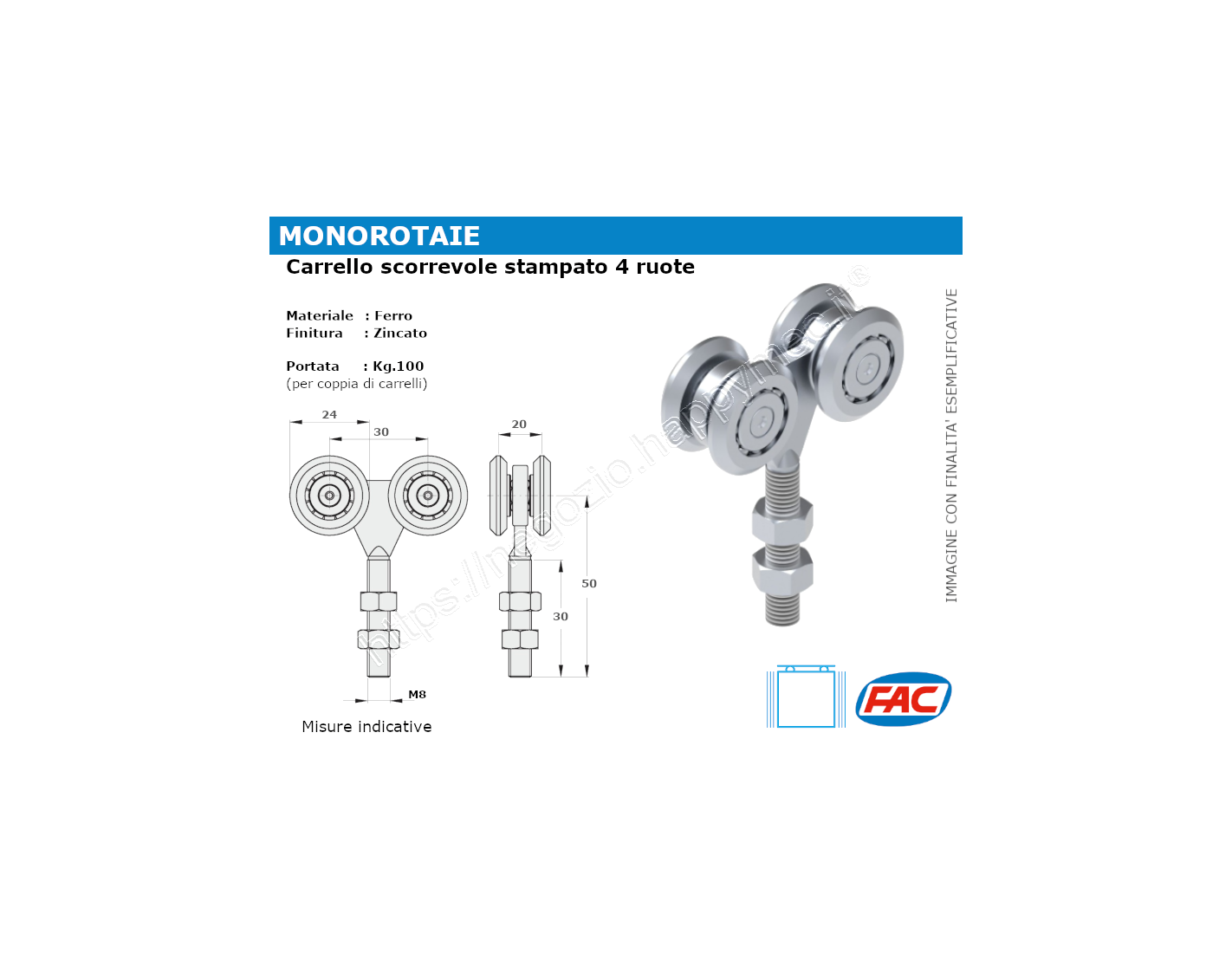 Carrello zincato 4 ruote d.24 supporto forgiato per MR-C