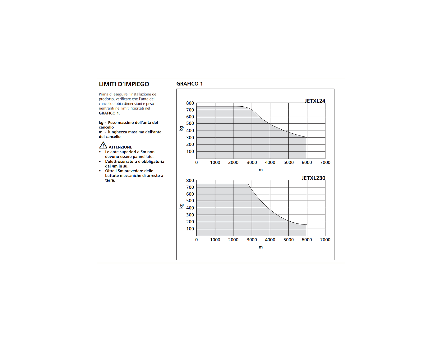 Motoriduttore irreversibile Jet 24XL per cancelli a battente, dimensione massima anta 6 metri e 750 kg di peso