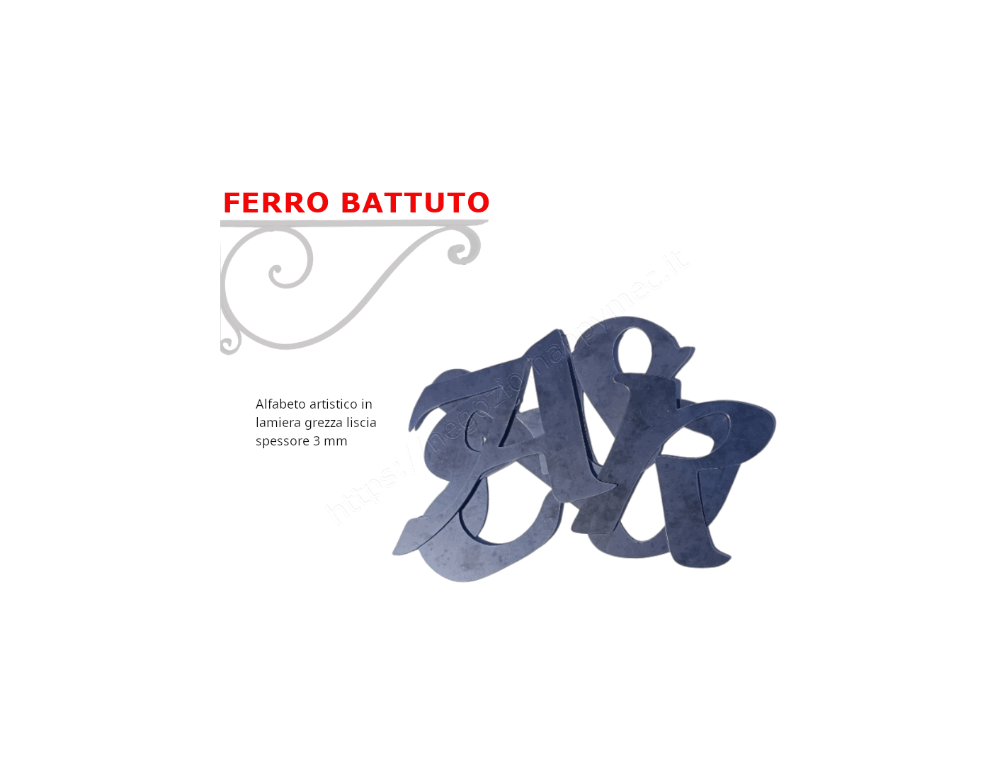 Lettere dell'alfabeto in ferro intagliate con pantografo ossitaglio da una lamiera grezza spessore 3 mm. interamente pre battuta.