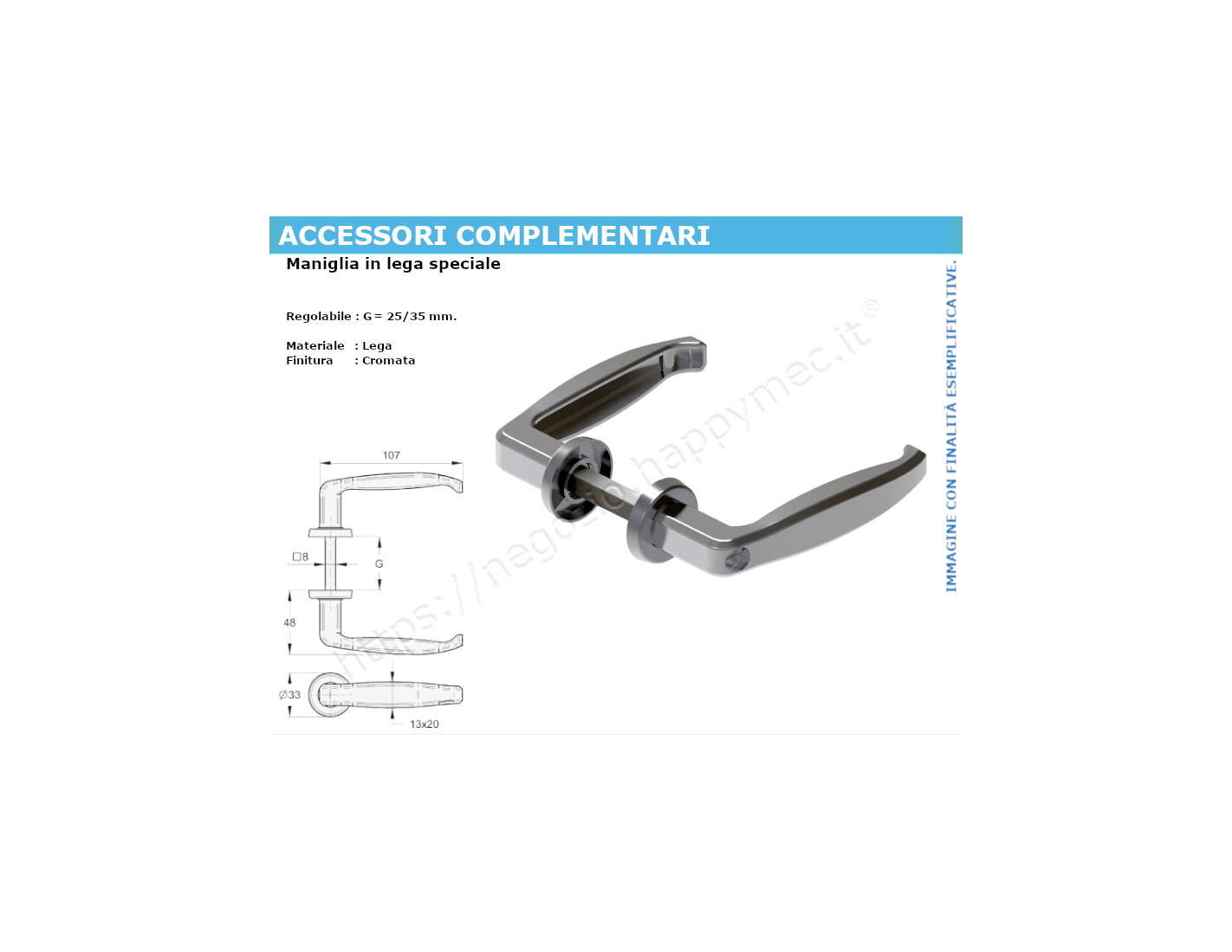 -5% Prodotto disponibile per la spedizione Maniglie cromate Maniglia in lega cromata, regolabile 50-60 mm. FAC S.r.l. VB1301.050.C 15,10 € 15,90 € Peso stimato per la spedizione kg. 0,23 Aggiungi al carrello