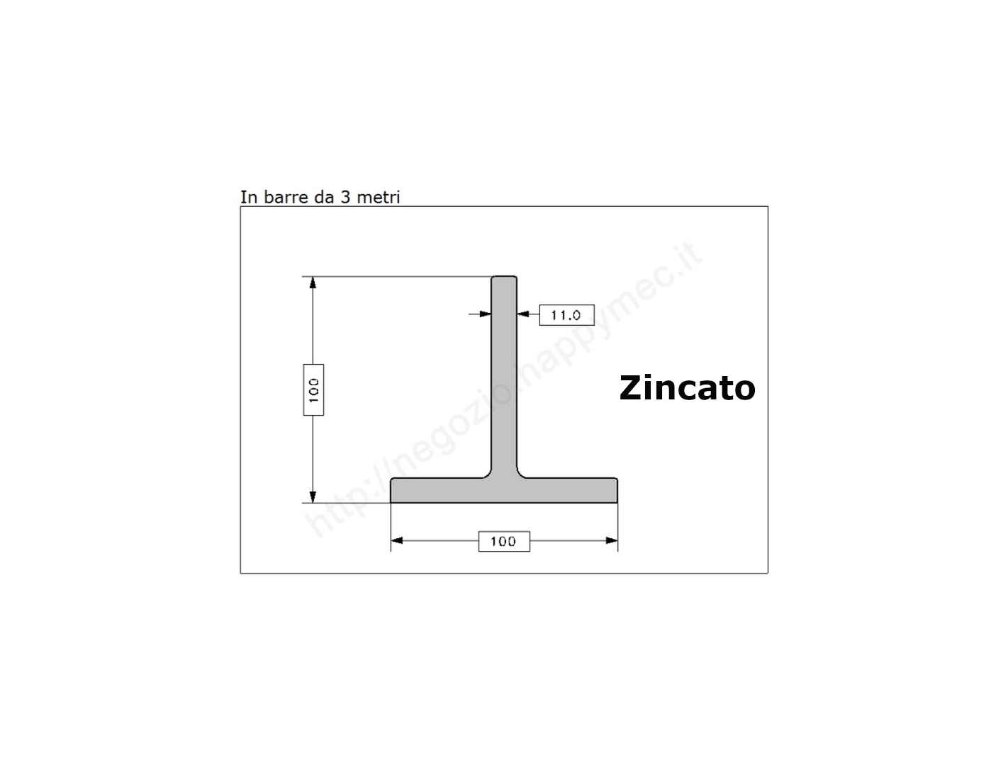A T 100x100x11 (UNI 5681-73 EN 10056) ZINCATO A CALDO