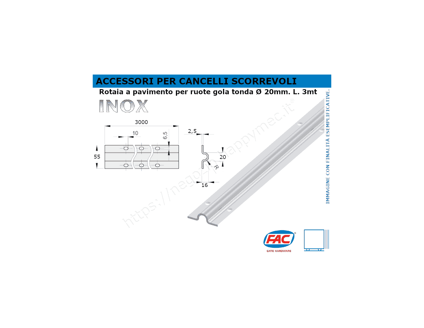 Ultimi articoli in magazzino Rotaie a pavimento per gola Ø16 Rotaia inox a pavimento 3 mt per ruote gola diam. 16mm FAC VA2302.003.i 239,12 € Peso stimato per barra kg.3,8 Aggiungi al carrello
