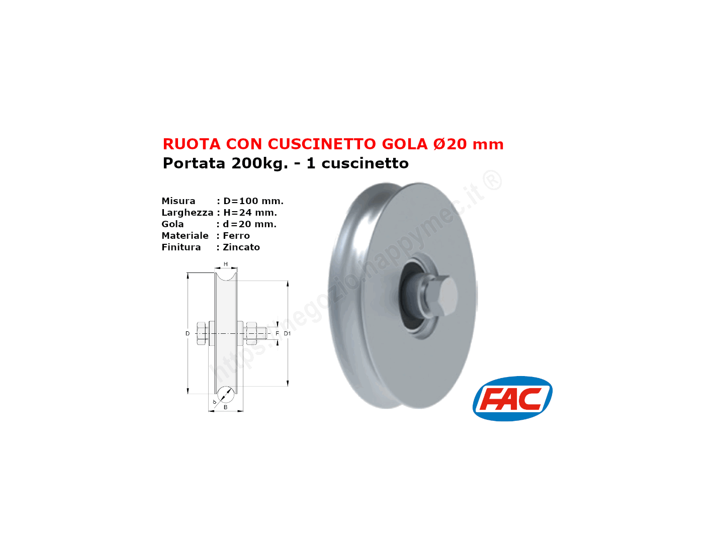 Ruota zincata diametro 100x24 gola d.20 accessori per cancello