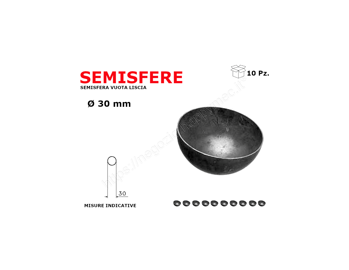 Mezza sfera stampata diametro 30 mm spessore 3 mm in lamiera di metallo