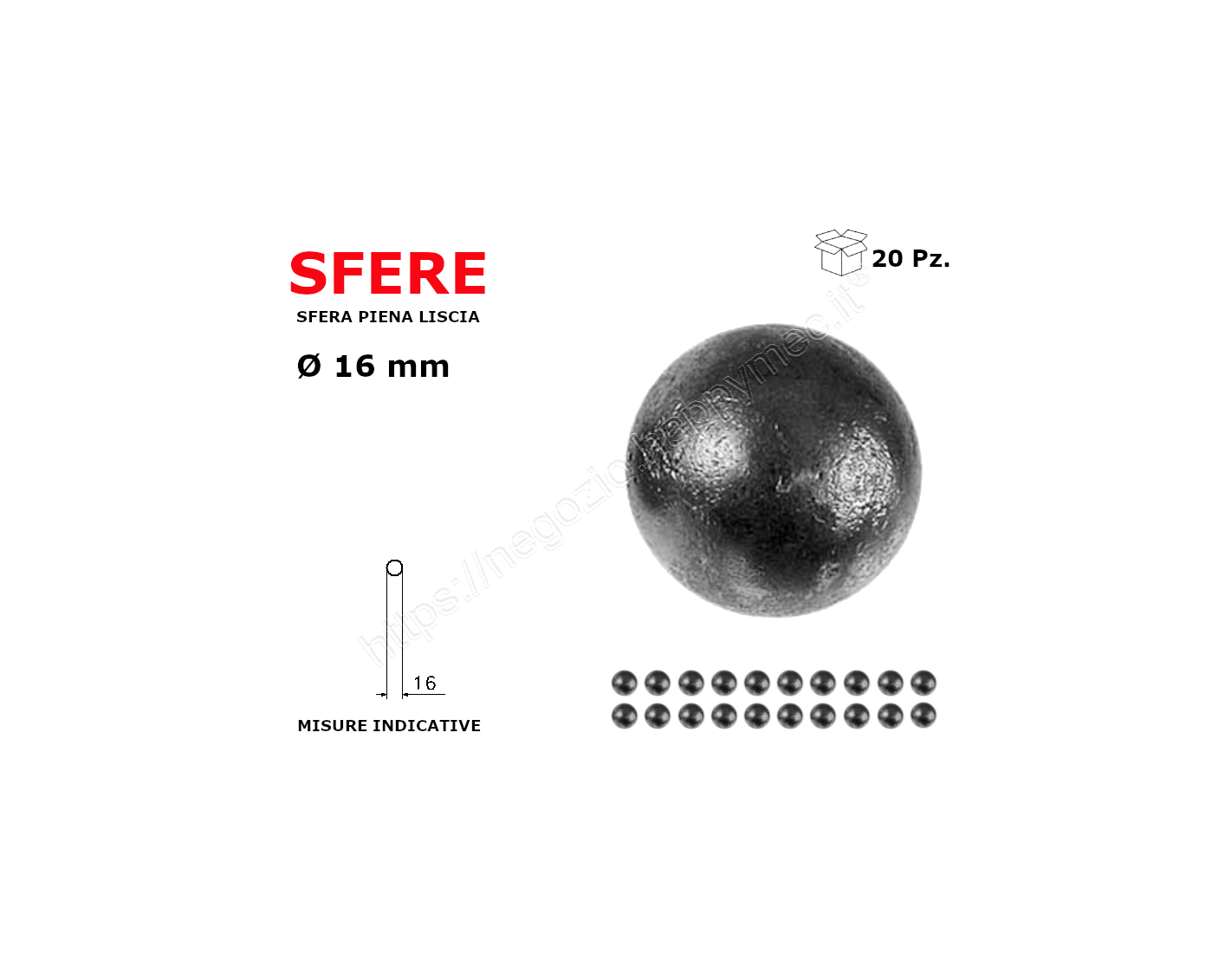 Sfera piena liscia in ferro diametro 16 mm.