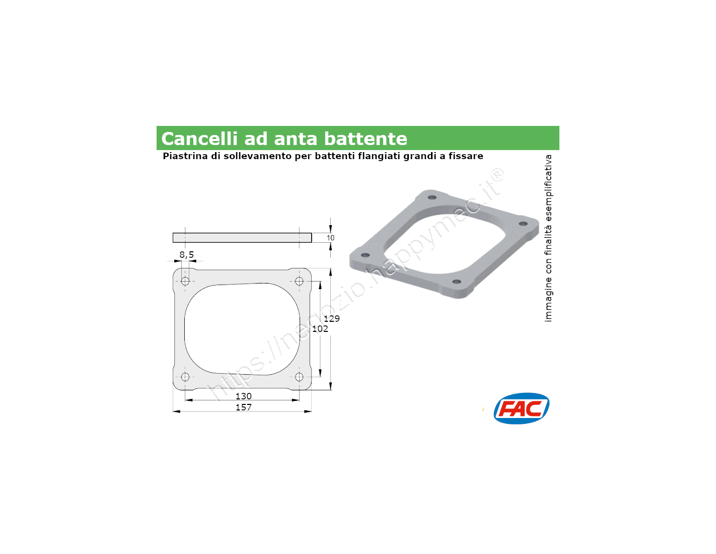 Questo spessore zincato serve per alzare di 10 mm il battente flangiato VC5102.090 grande per cancelli a 2 ante. La caratteristica di questo componente realizzato in un unico pezzo è di migliorare la stabilità del fissaggio al terreno permettendo di assorbire i colp, anche forti, delle ante in chiusura.