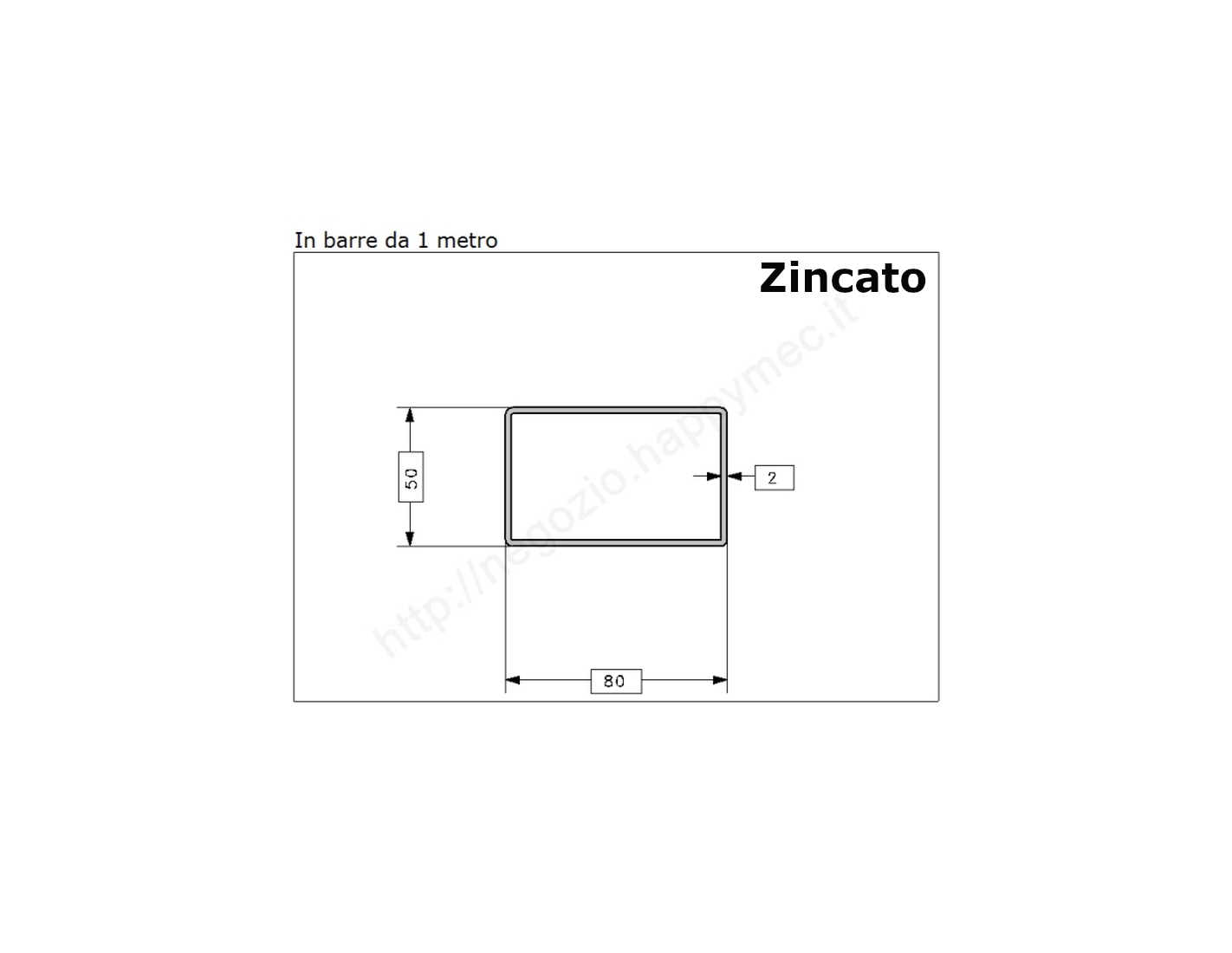 PROFILO IN FERRO TUBOLARE RETTANGOLARE 80x50x2 (S235jr) ZINCATO A CALDO